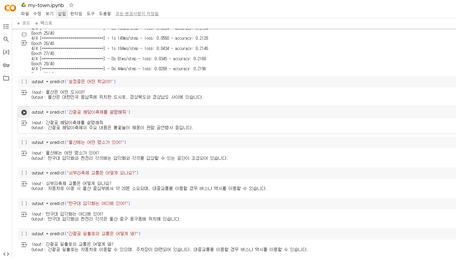쳇봇과의 대화결과 이ㅇ원