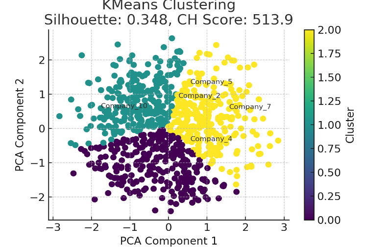 - 최적의 클러스터링 방법: KMeans가 비교적 높은 실루엣 계수와 칼린스키-하라바즈 지수를 보여 성능이 우수했습니다.