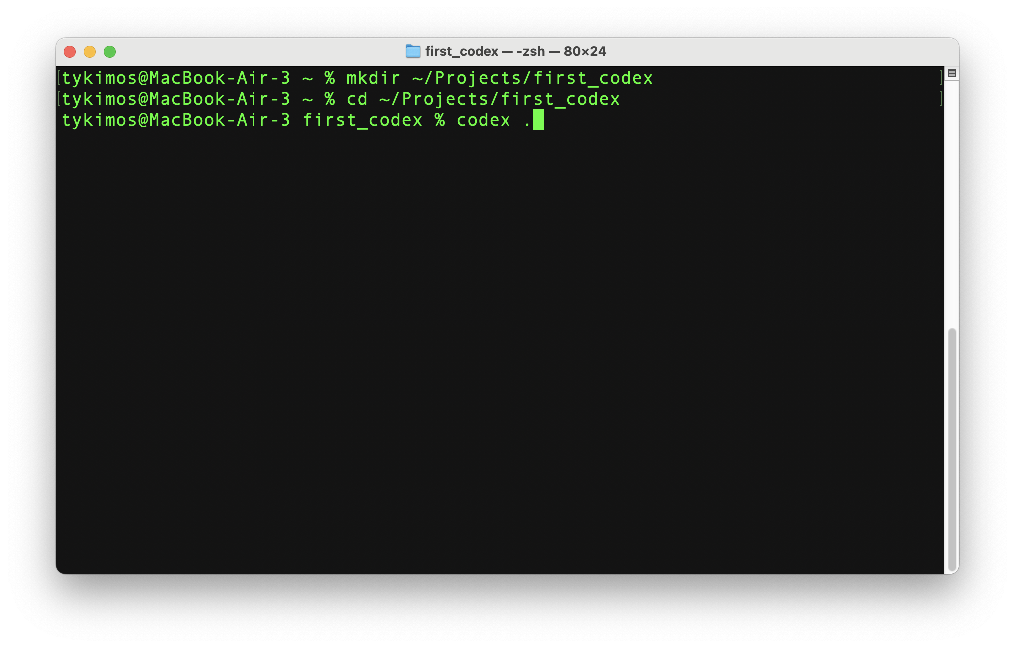 codex .codex . 명령은 현재 폴더를 Codex 프로젝트로 초기화하며, 이후부터 Codex가 이 폴더 내에서 코드를 생성하거나 관리할 수 있게 됩니다.