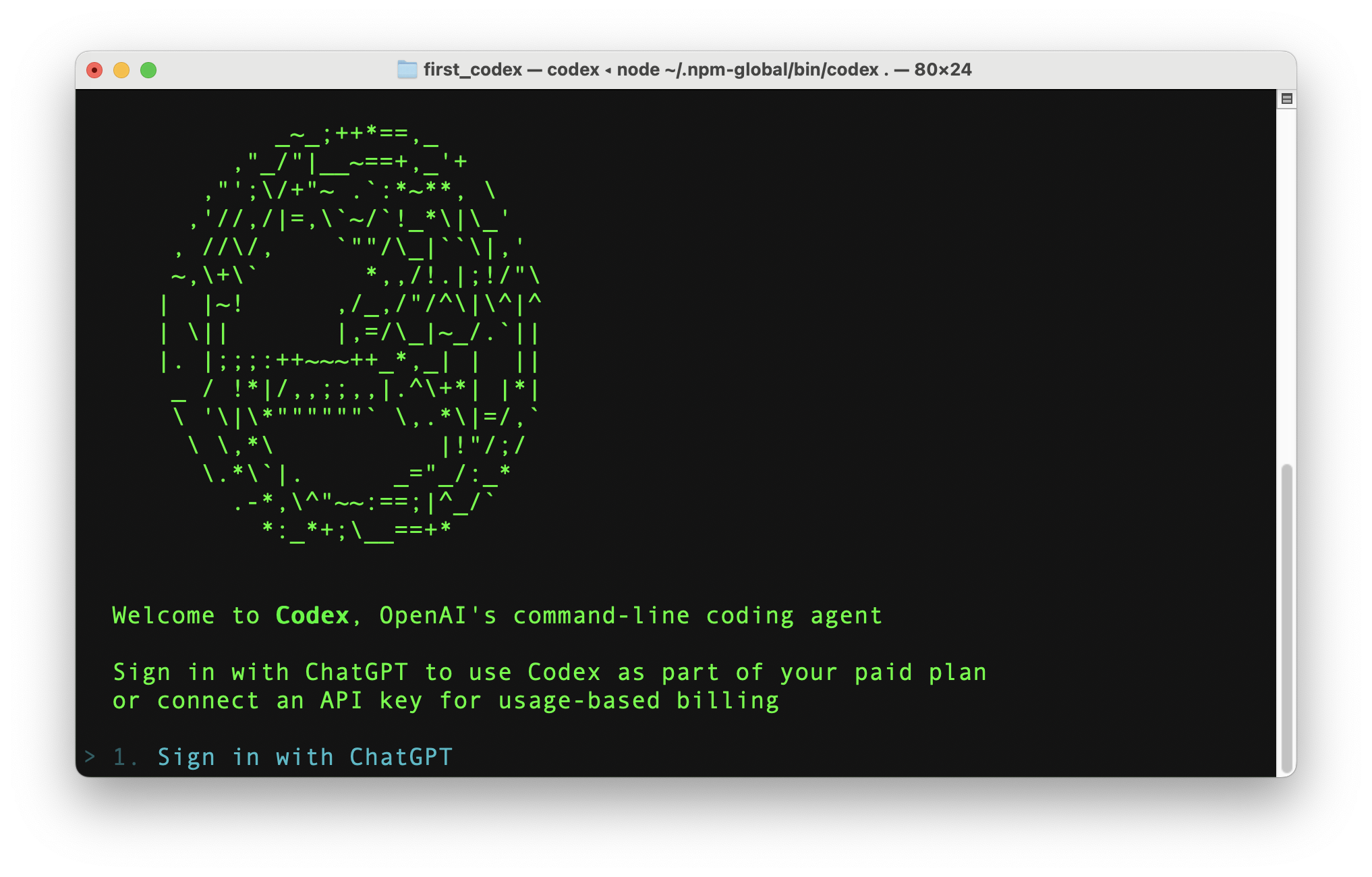 터미널에서 처음 Codex를 실행하면 아래와 같은 메시지가 나타납니다.