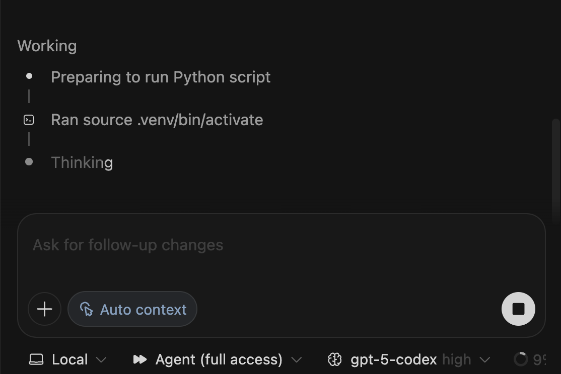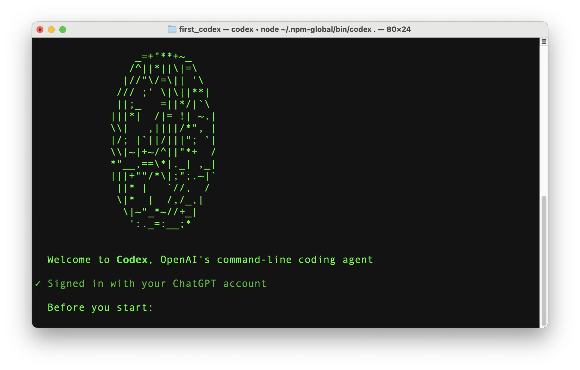 이제 CLI와 IDE 양쪽 모두에서 Codex를 사용할 준비가 완료되었습니다. 그럼 Codex로도 바이브코딩 함께 하시죠~