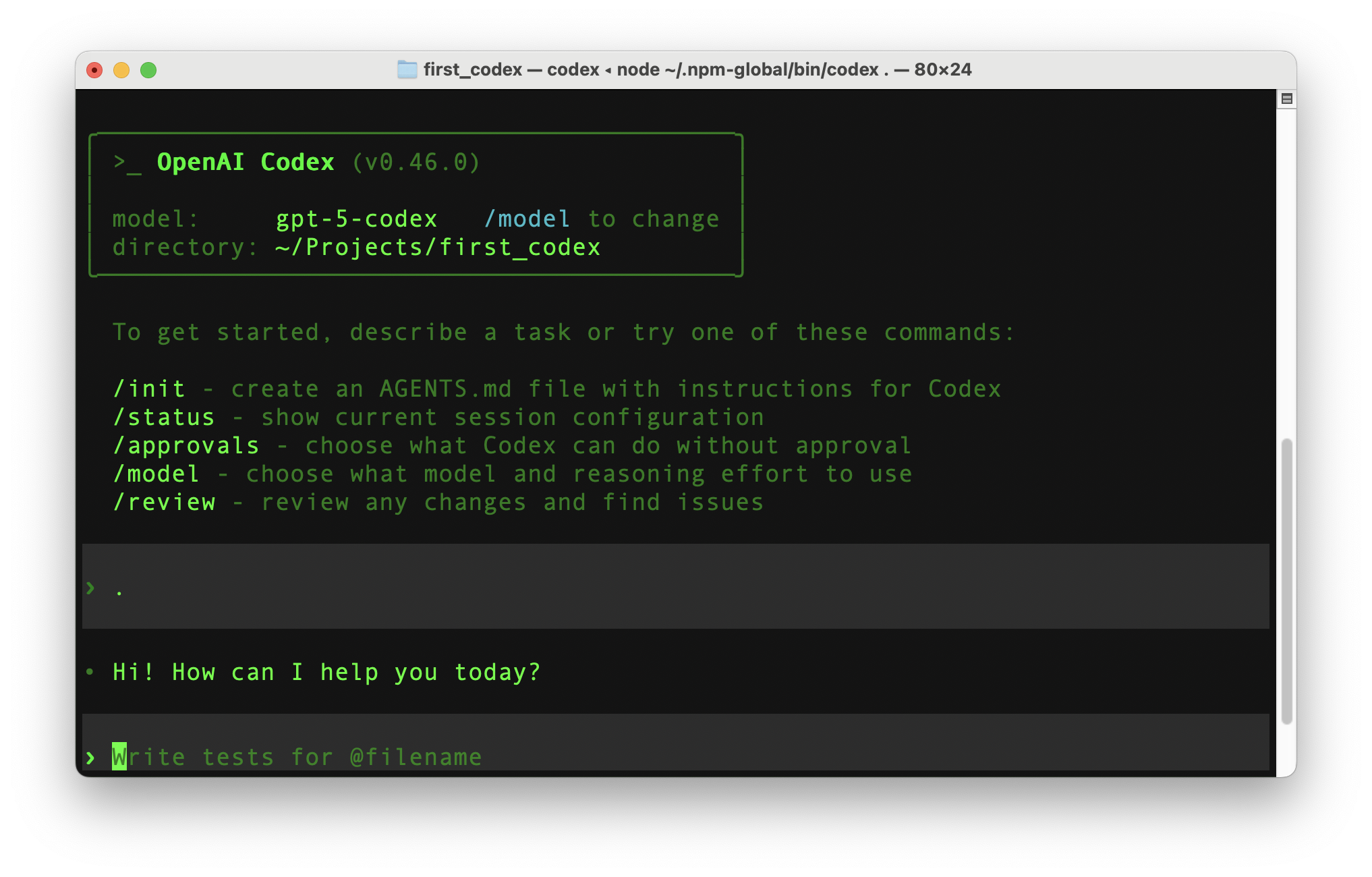 5️⃣ 첫 실행 — Codex 명령창 사용하기