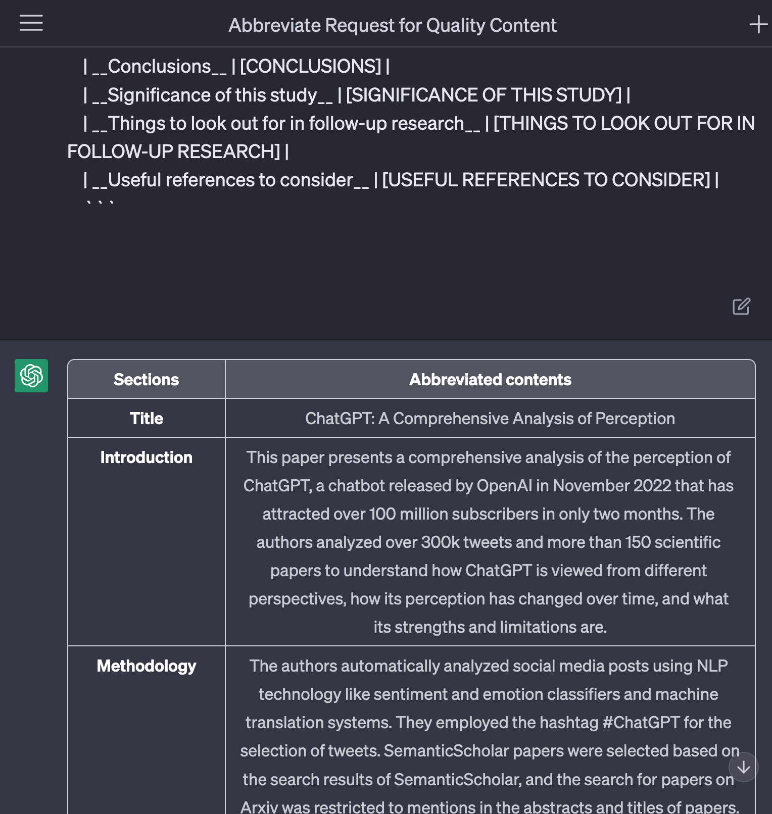 - English: wjgoarxiv/PaperSumGPT: ::A tool to abbreviate scientific paper contents using ChatGPT:: (github.com)