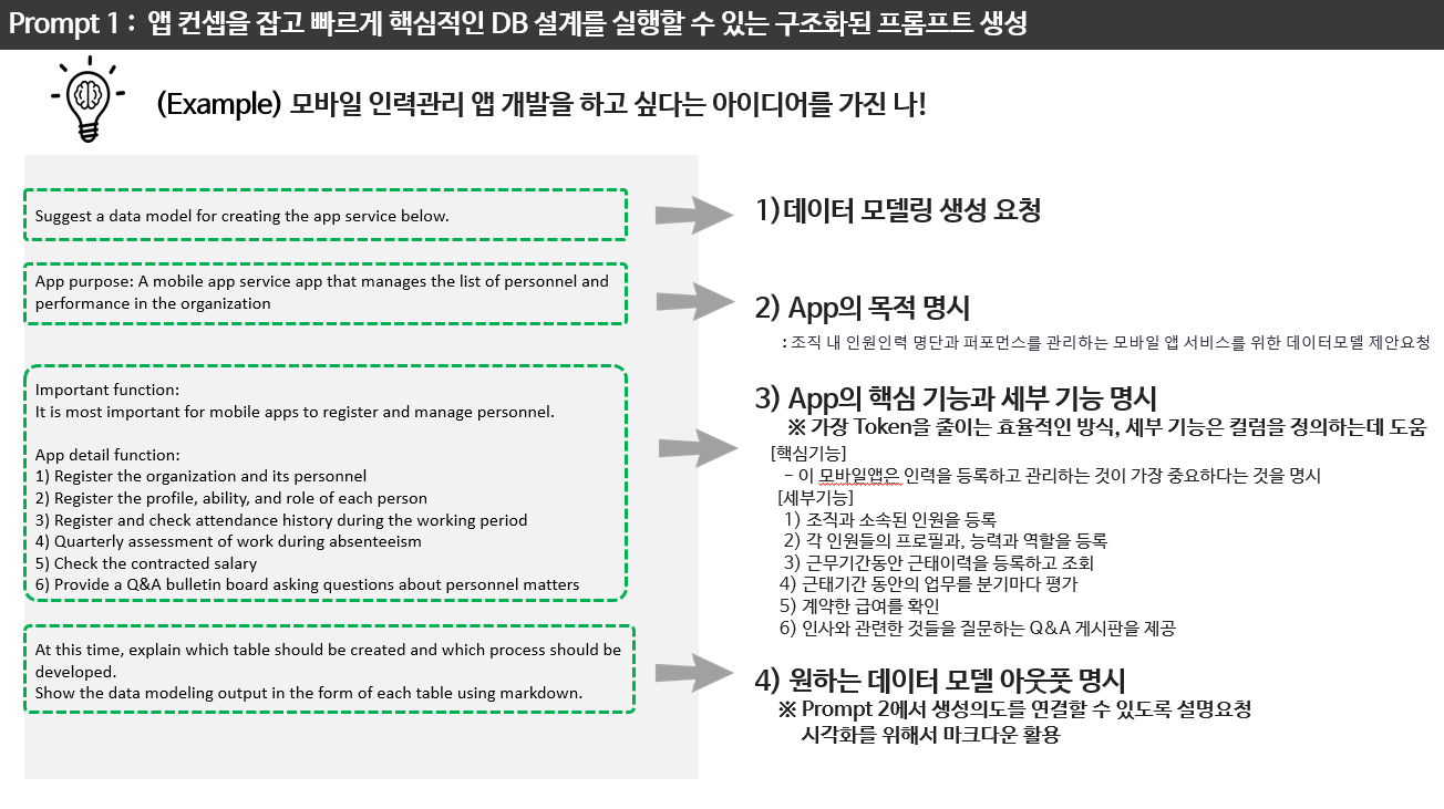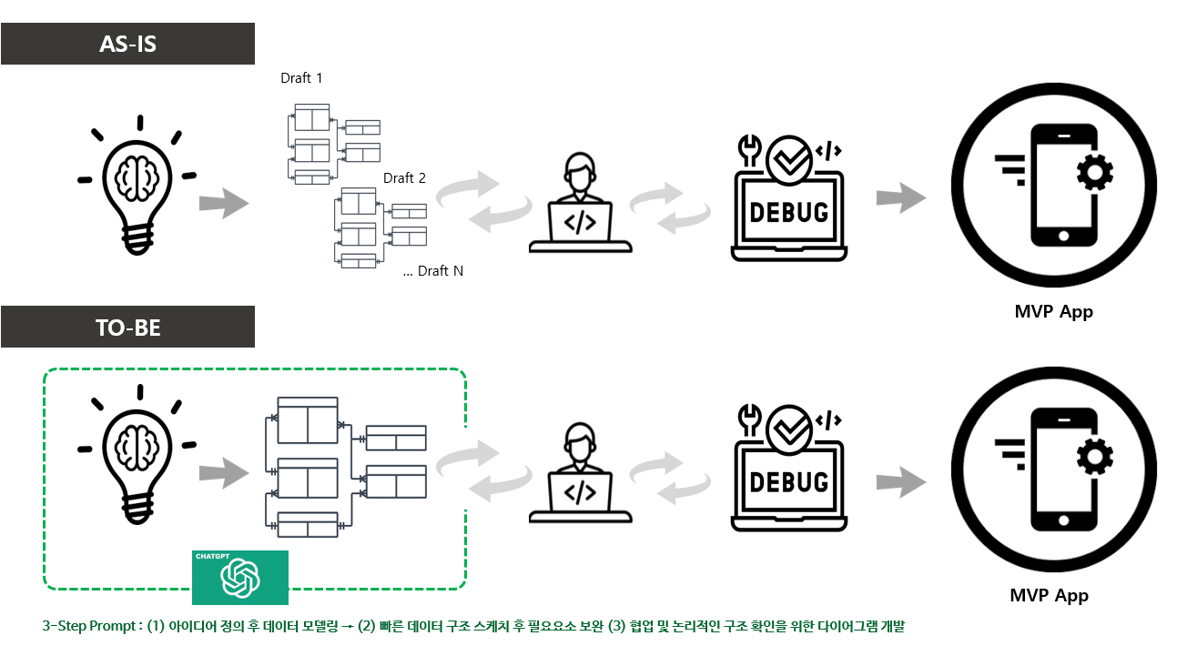 GPT를 통해 애자일한 개발환경에서 보다 빠르게 핵심적인 DB 설계하고 MVP 개발을 진행할 수 있는 업무효율화 프롬프트 시리즈 구성