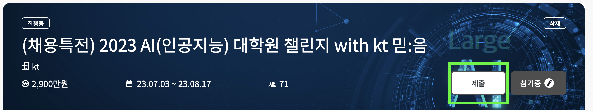 드디어 kt 믿:음 과 함께하는 ‘2023 AI 대학원 챌린지’ 예선이 시작됩니다.