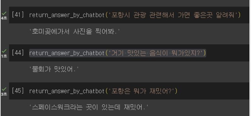 그 후 데이터를 통해 AI를 학습시키고, 여러 질문들을 던져보며 잘 작동하는지 확인할 수 있습니다.