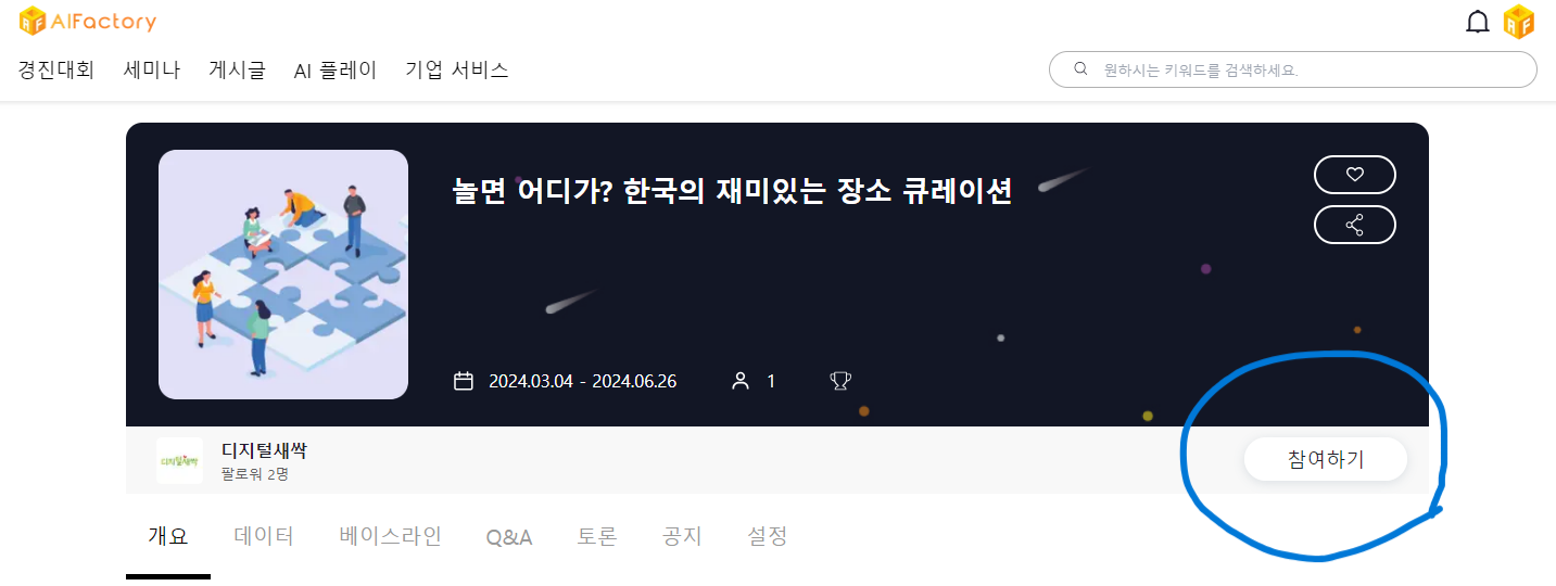 대한민국에서 여러분이 좋아하는 장소를 찾고, 해당 장소를 추천하는 AI를 만들어보세요!