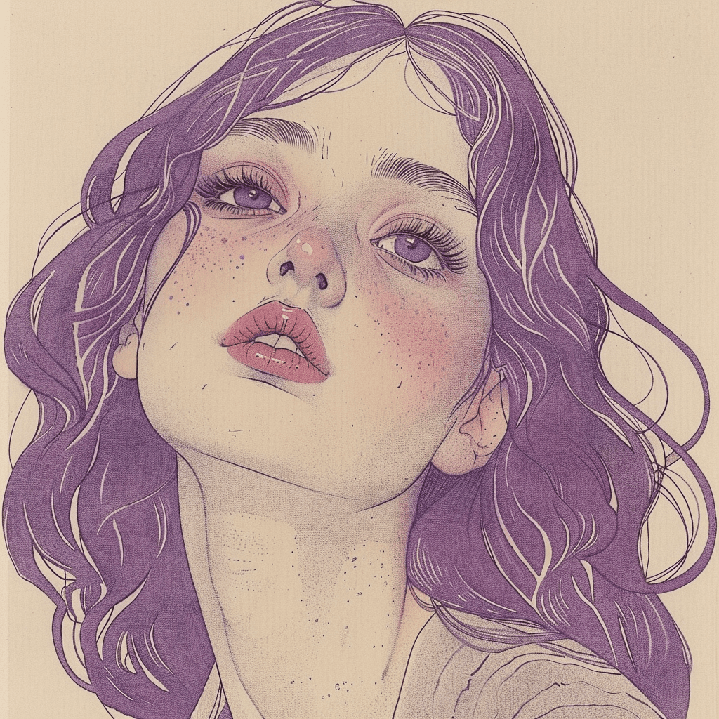 Description : 보라색 계열의 부드라운 재질의 색감, 단조로운 배경Prompt : cute girl --sref 4158901231 --niji 6 --style raw --s 250
