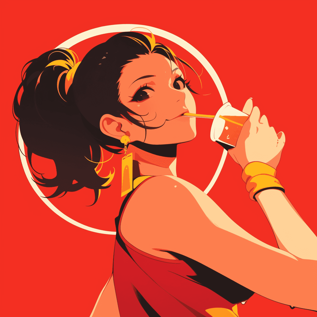 Artwork style , 면 일러스트 느낌, 강한 음영Key color는 Orang Prompt : cute girl --sref 1111113935 --niji 6