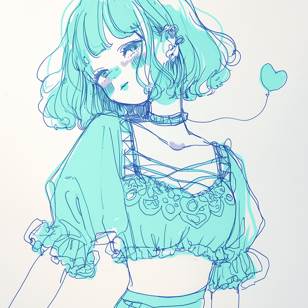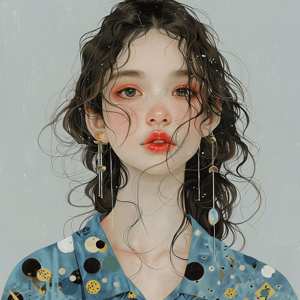 Description : 청색계열의 부드러운 파스텔 톤과 밝은 색상이 주를 이루는 스타일Prompt : cute girl --sref 2495562743 --v 6.0 --style raw --s 250