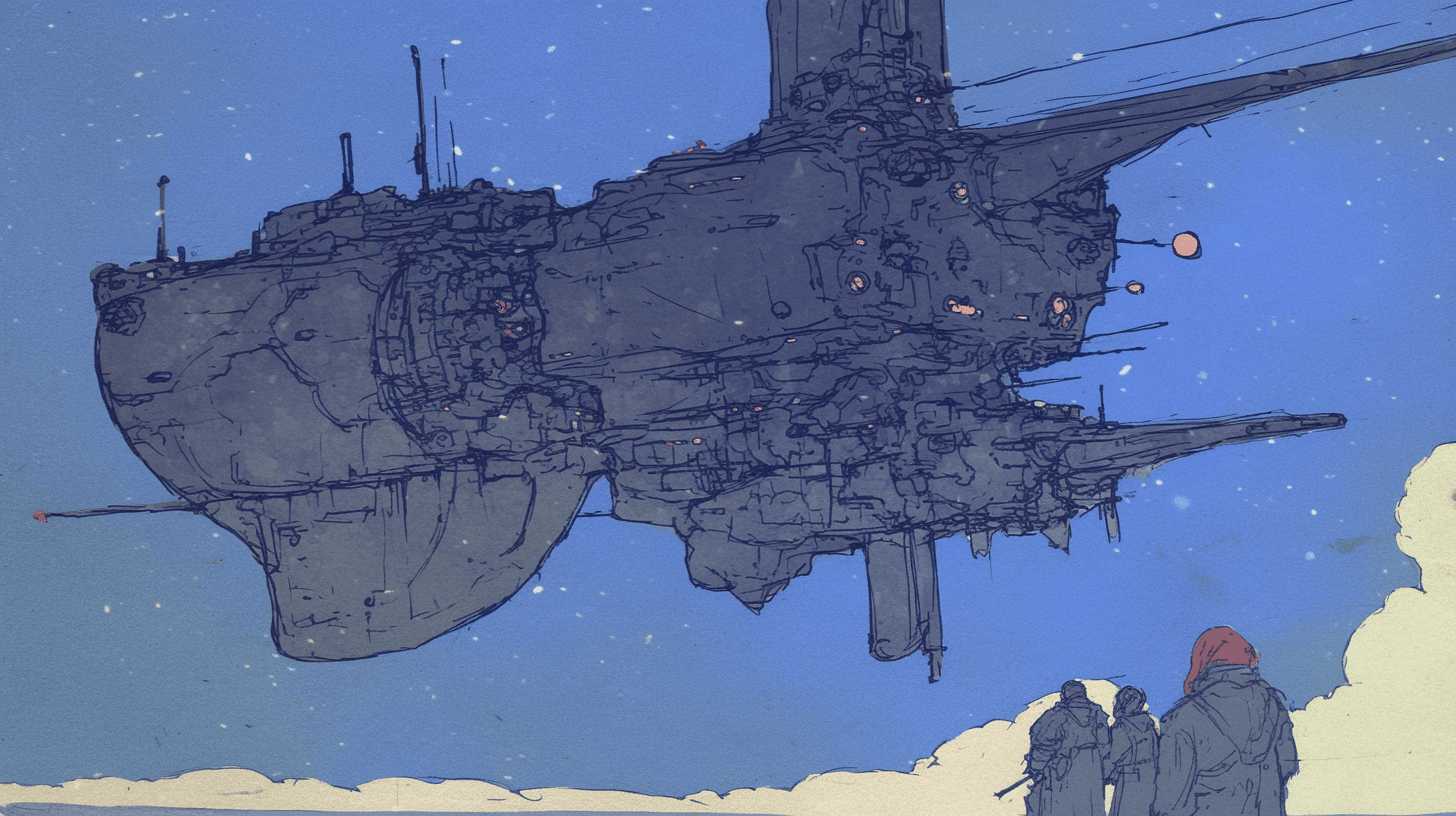SF StyleSF 소설 삽화에 어울릴꺼 같은 그림체. 디테일 표현은 약한데 느낌적인 부분이 강한 그림체.Prompt : space ship, Sci-Fi , Concept art --sref 2942474579 --niji 6 --ar 16:9