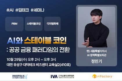 AI 딥테크 세미나는 AI에 관심있는 누구나 참여할 수 있는 세미나로, AI와 함께 발전하는 딥테크 문화를 공유하기 위해 마련 되었습니다. 이번 세미나는 세종특별자치시 AI 정책특별보좌관으로 근무중이신 정민기님을 모시고 AI 와 디지털 화폐가 공공분야에 일으키는 혁신에 대해 이야기 나누고자 합니다. 😊
